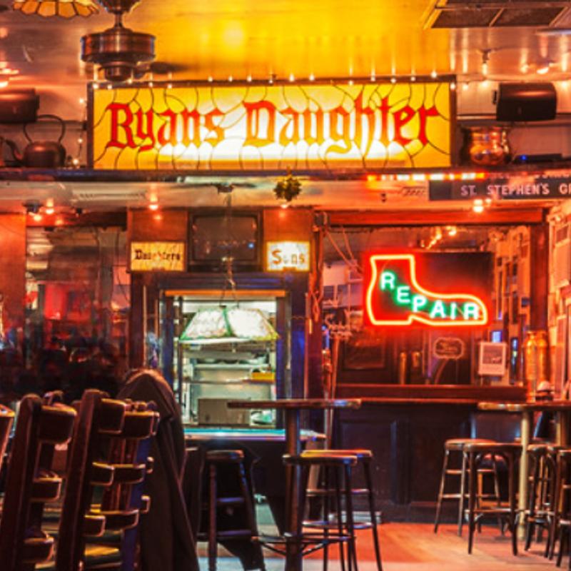 Upper east side institution. Instagram upperfeast. Ryan's Daughter is chill and fun. Great staff and a great space for hosting private events. Music, TVs, fully stocked bar. Reasonable prices.